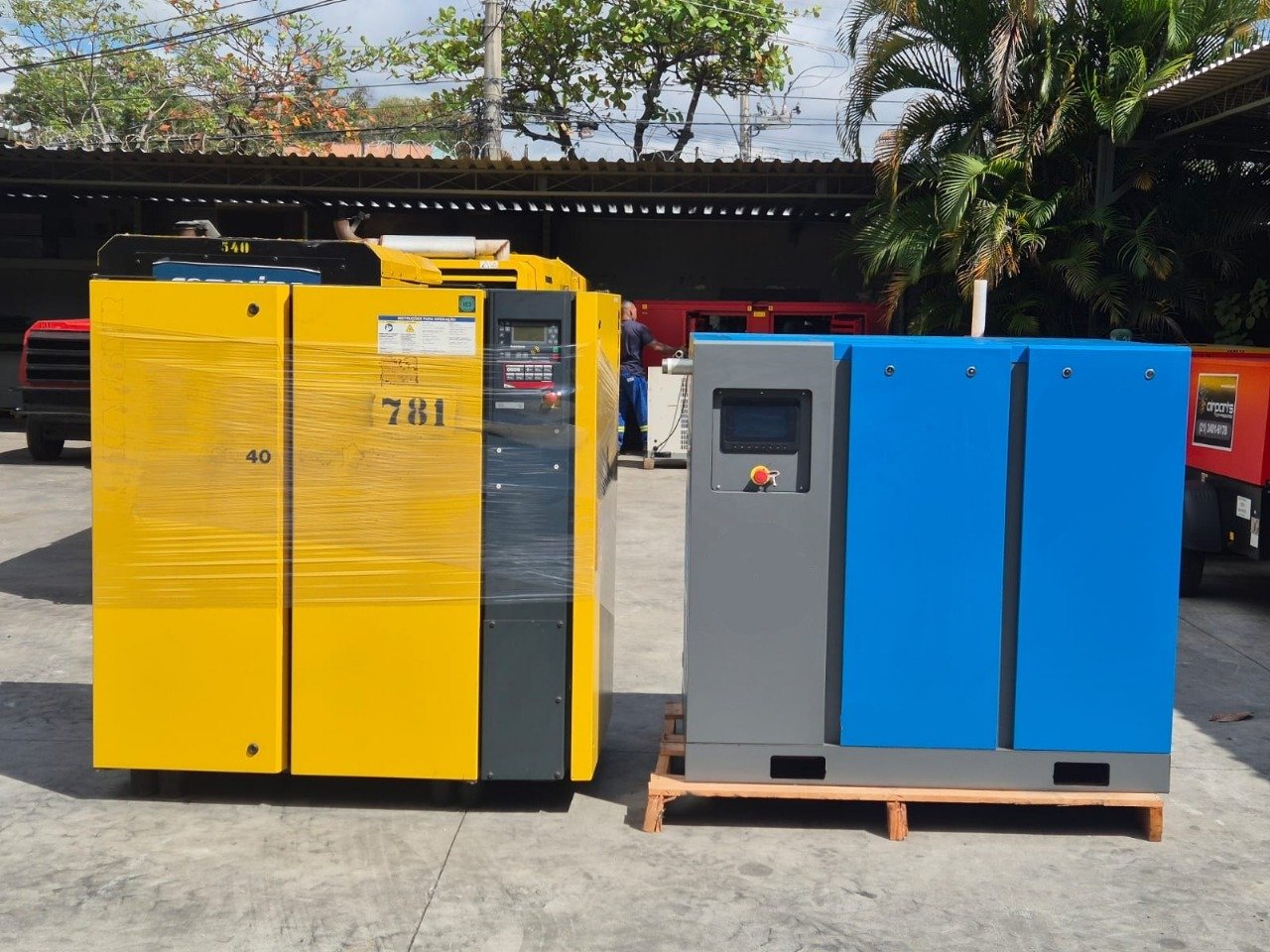 Compressores elétricos de parafuso lubrificados de 7,5 a 300 HP.