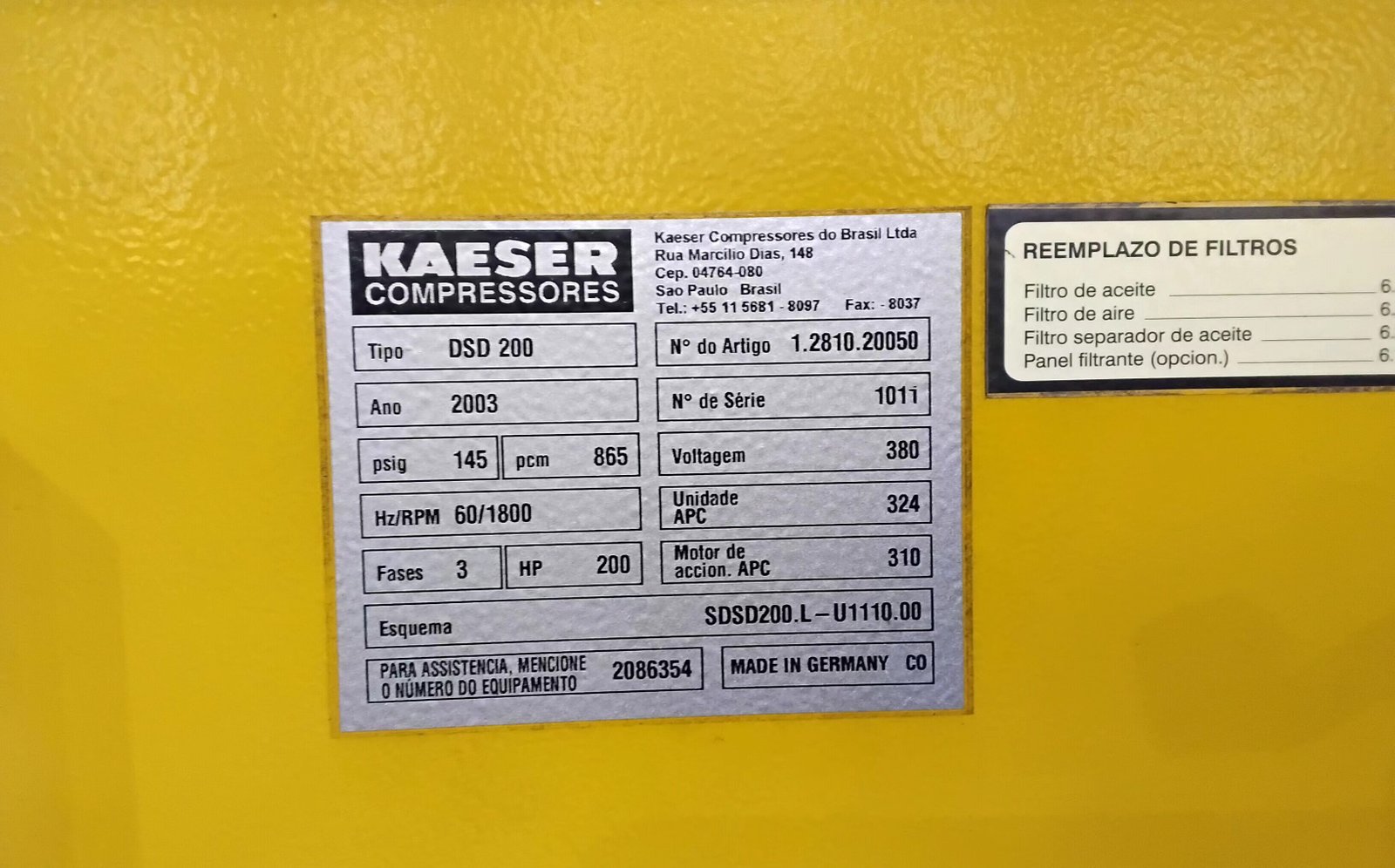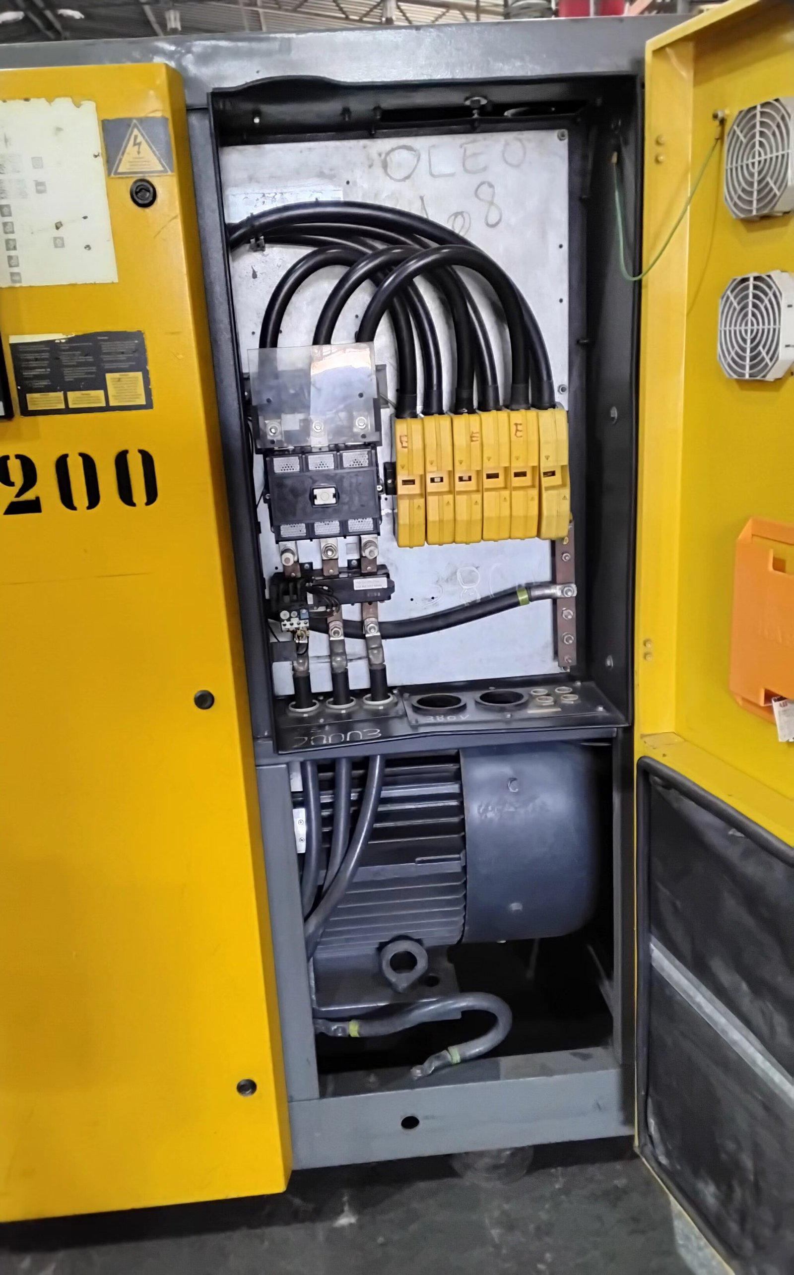 Compressor elétrico Kaeser 200 HP – Frota 869 Vazão 856 pcm 10 bar – 380 V Ano 2003 Horimetro – 18463 horas FUNCIONANDO