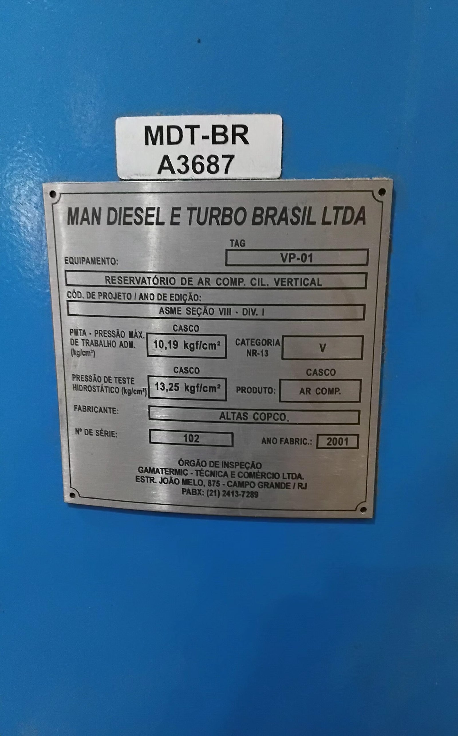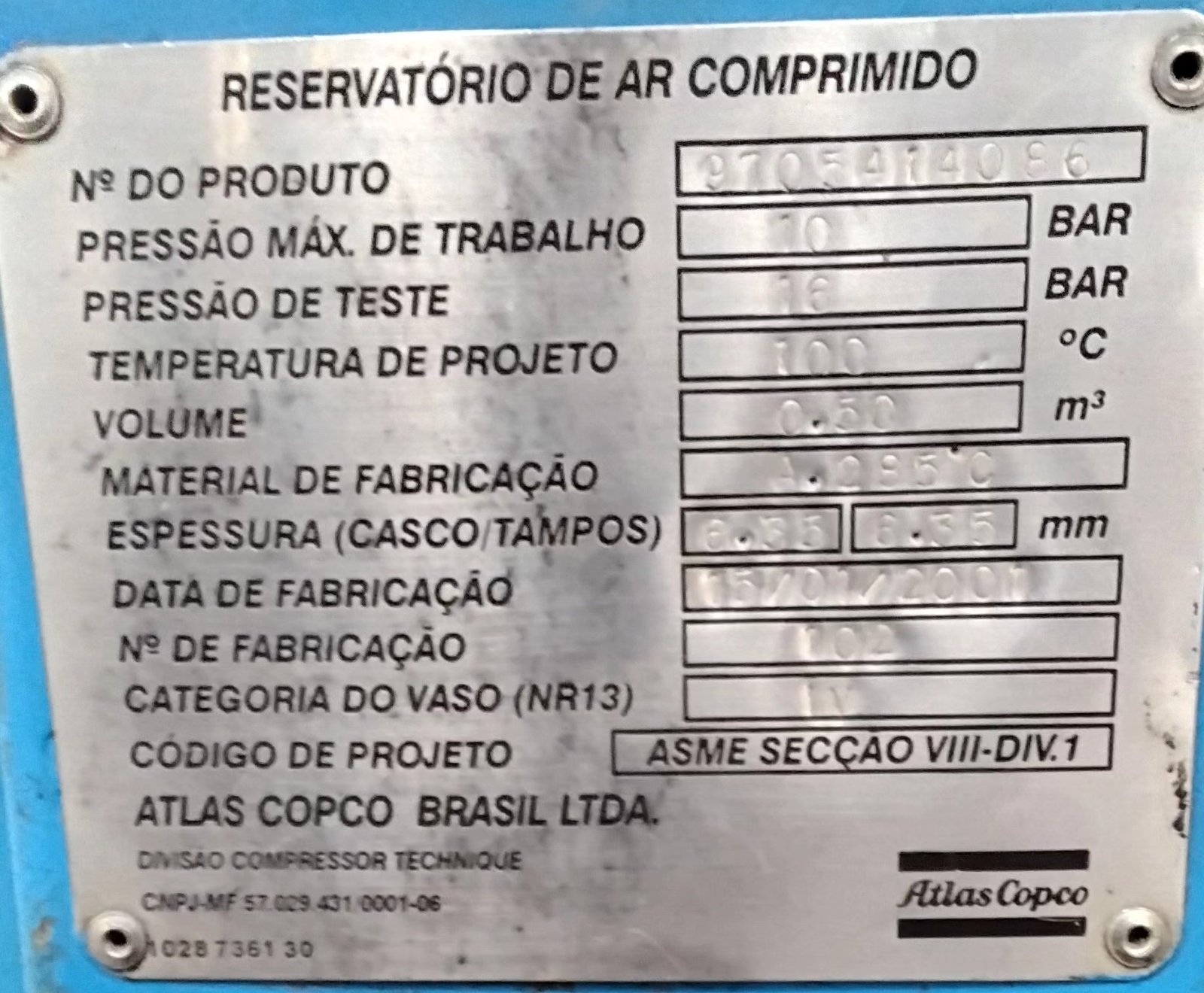 Reservatório 500L – 10 bar – Atlas Copco 500 litros – 10 bar – Vertical Com manômetro e válvula R$ 13.000,00