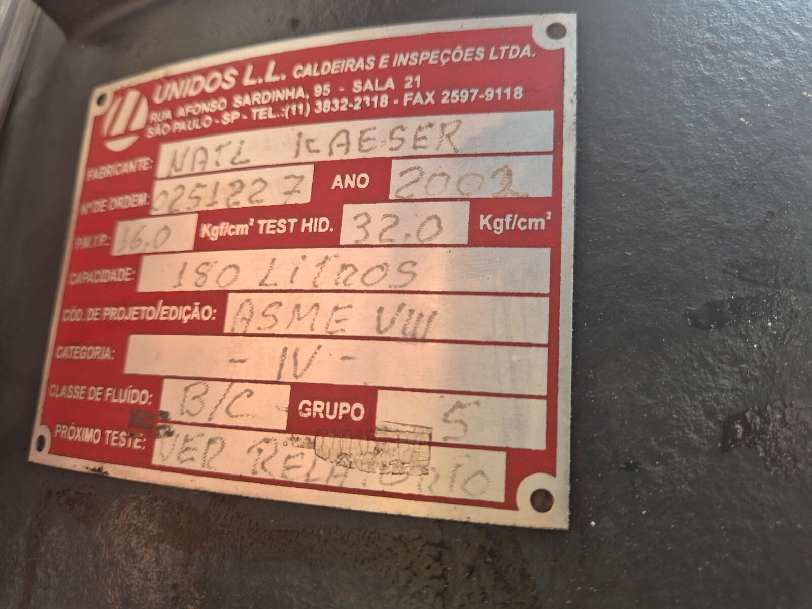 Tanque separador com valvula de pressão mínima – PSV